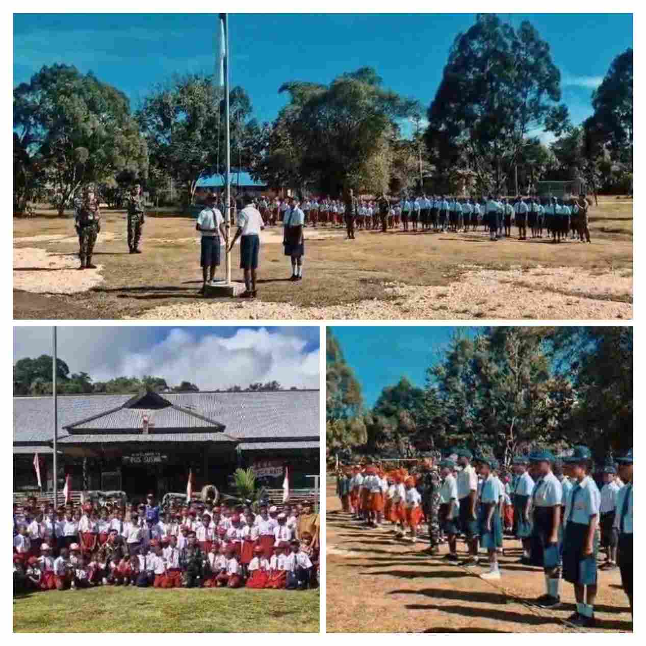 Satgas Yonif 763/SBA Pos Suswa Laksanakan Upacara Pengibaran Bendera Merah Putih Bersama Masyarakat Binaan