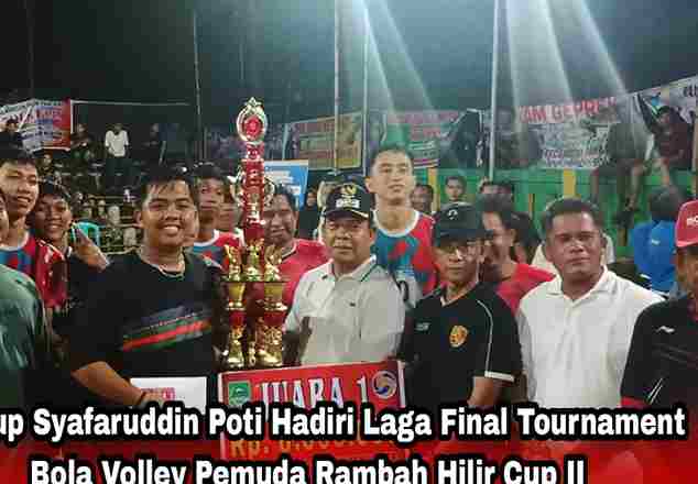ROHUL-JAYA NEWS.COM – Wakil Bupati Rokan Hulu (Rohul) H. Syafaruddin Poti, S.H, MM hadiri laga final dan tutup secara resmi Semi Open Tournament Volley Ball Pemuda Rambah Hilir Cup II, Lapangan Pasir Panjang Minggu (28/09/2025).