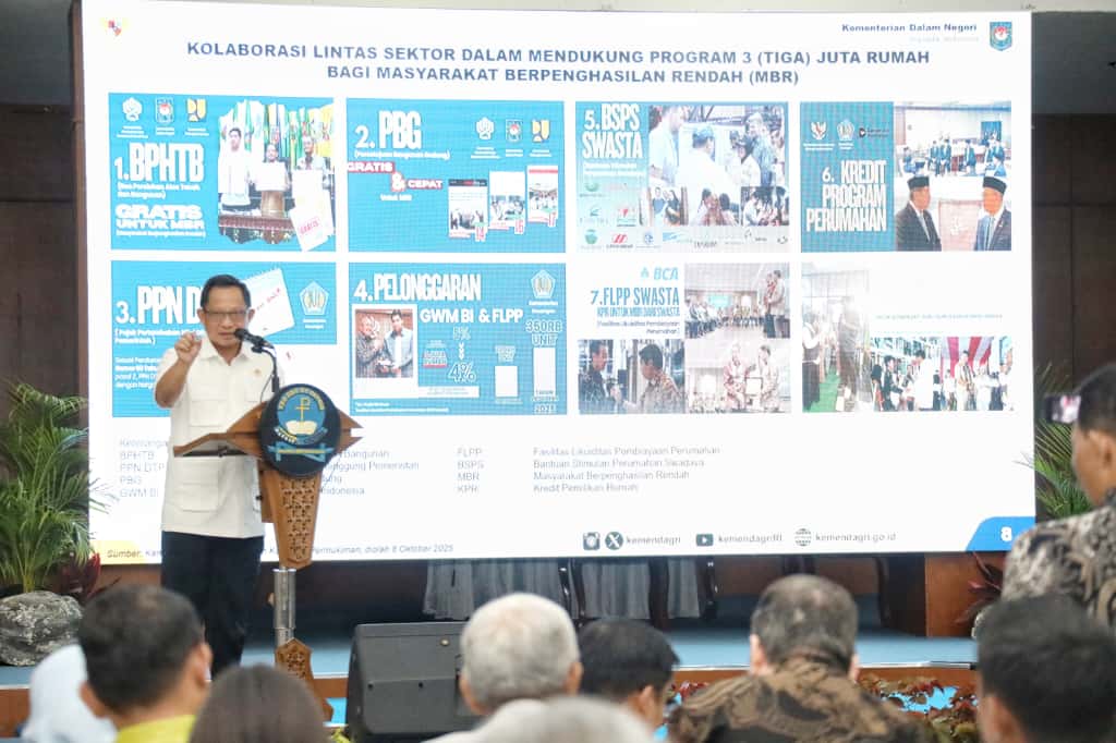 Hal tersebut disampaikan Mendagri dalam sambutannya pada acara Sosialisasi Kredit Program Perumahan di Universitas HKBP Nommensen (UHN), Kota Medan, Sumatera Utara (Sumut), Jumat (10/10/2025). Kegiatan ini dihadiri Menteri Perumahan dan Kawasan Permukiman (PKP) Maruarar Sirait, Rektor UHN Richard Napitupulu beserta civitas academica, serta sejumlah pihak perbankan dan pengembang.