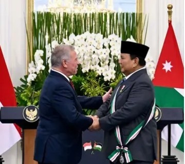 JAKARTA-JAYA NEWS.COM – Presiden Prabowo Subianto menerima penghargaan “The Bejewelled Grand Cordon of Al Nahda (Order of the Renaissance)” dari Raja Kerajaan Yordania Hasyimiah, Raja Abdullah II ibn Al Hussein. Penghargaan ini diberikan langsung oleh Raja Abdullah II ibn Al Hussein dalam kunjungan kenegaraannya ke Indonesia, Jumat (14/11/2025), dalam sebuah acara yang berlangsung di Istana Merdeka, Jakarta.