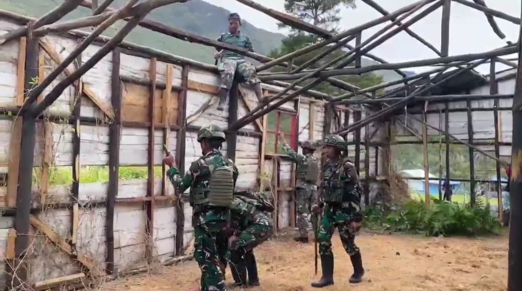 YAHUKIMO PAPUA PEGUNUNGAN-Kepedulian terhadap lingkungan dan semangat melestarikan budaya gotong royong terus diwujudkan oleh Satgas Pamtas RI-PNG Kewilayahan Yonif 521/DY, Gereja Polimo yang bangunannya sudah tidak layak di gunakan di khawatirkan membahayakan masyarakat untuk kegiatan ibadah, sehingga melalui para tokoh bersama masyarakat setempat bangunan Gereja di laksanakan pembongkaran, Sabtu (06/12/2025).