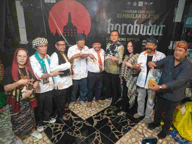 JAKARTA-JAYA NEWS.COM – A serene atmosphere was felt upon entering the exhibition space of the Kampoeng Semar Gallery in Magelang, Central Java, where a group painting exhibition titled “Moon Above Borobudur” was taking place.