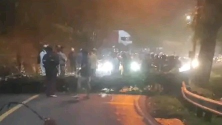 Akibat peristiwa ini kondisi arus lalu lintas terlihat mengular dari kedua arah. Akibat badan jalan tertutup batang pohon, hingga akhir nya dapat Dievakuasi.