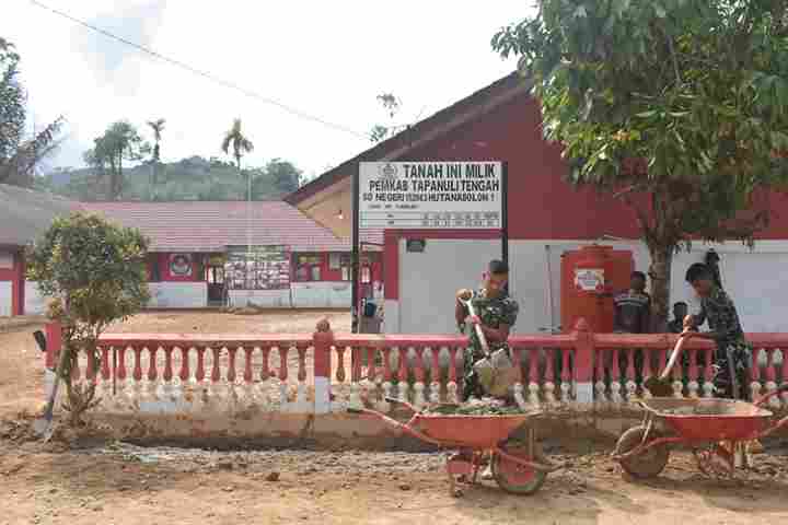 TAPTENG-JAYA NEWS.COM –Satgas Penanggulangan Bencana Alam (Gulbencal) melaksanakan pembersihan ulang SDN 152983 di Kelurahan Hutanabolon I, Kecamatan Tukka, Kabupaten Tapanuli Tengah, Sabtu (21/2/2026), setelah banjir susulan akibat curah hujan tinggi kembali menggenangi lingkungan sekolah.