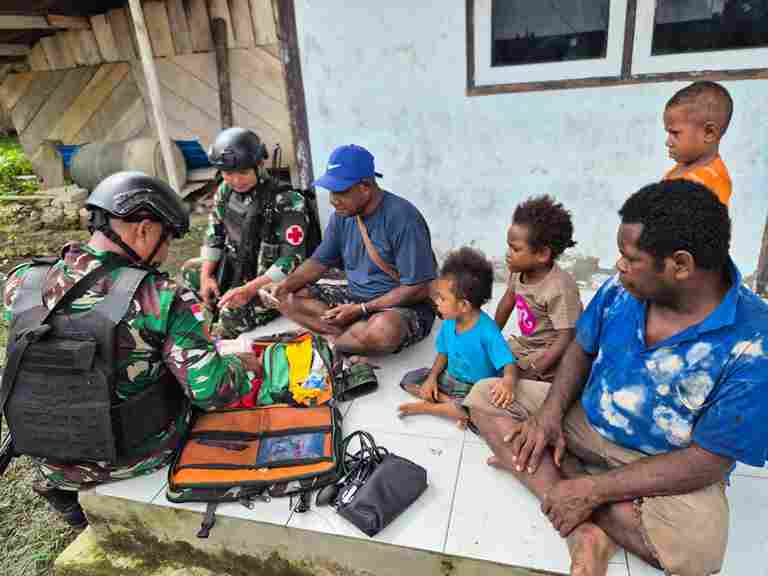 Satgas Pamtas Kewilayahan RI-PNG Yonif 410/Alg Berikan Yankes di Kampung Naikere
