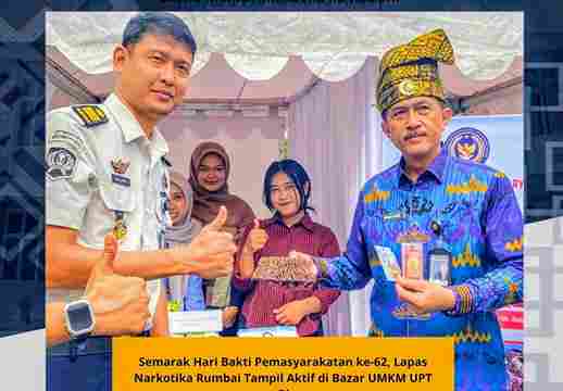 Pekanbaru-JAYANEWS.COM – Dalam rangka memperingati Hari Bakti Pemasyarakatan (HBP) ke-62, Lapas Narkotika Kelas IIB Rumbai turut ambil bagian dalam kegiatan bazar UMKM yang digelar di Rumah Tahanan Negara Kelas I Pekanbaru. Kegiatan ini dihadiri dan diikuti oleh Kepala Kantor Wilayah Direktorat Jenderal Pemasyarakatan Riau, Maizar serta seluruh Unit Pelaksana Teknis (UPT) Pemasyarakatan se-Riau sebagai bentuk dukungan terhadap pengembangan kreativitas dan kemandirian warga binaan, Kamis (9/4/26).
