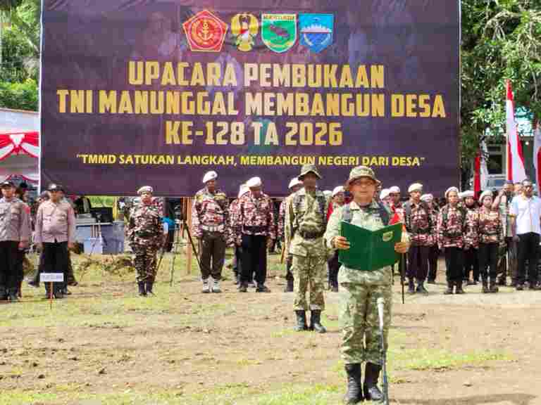 MANOKWARI-JAYANEWS.COM — Program TNI Manunggal Membangun Desa (TMMD) Ke-128 Tahun Anggaran 2026 secara resmi dibuka di Kampung Tanah Rubuh, Distrik Manokwari Utara, Kabupaten Manokwari, pada Rabu (22/4). Pembukaan dipimpin langsung oleh Bupati Manokwari, Hermus Indou, S.IP., M.H. serta dihadiri oleh Pangdam XVIII/Kasuari yang diwakili oleh Kasdam XVIII/Kasuari Brijen TNI Dian Hardiana, S.I.P., unsur Forkopimda Kabupaten Manokwari, serta para tokoh masyarakat.